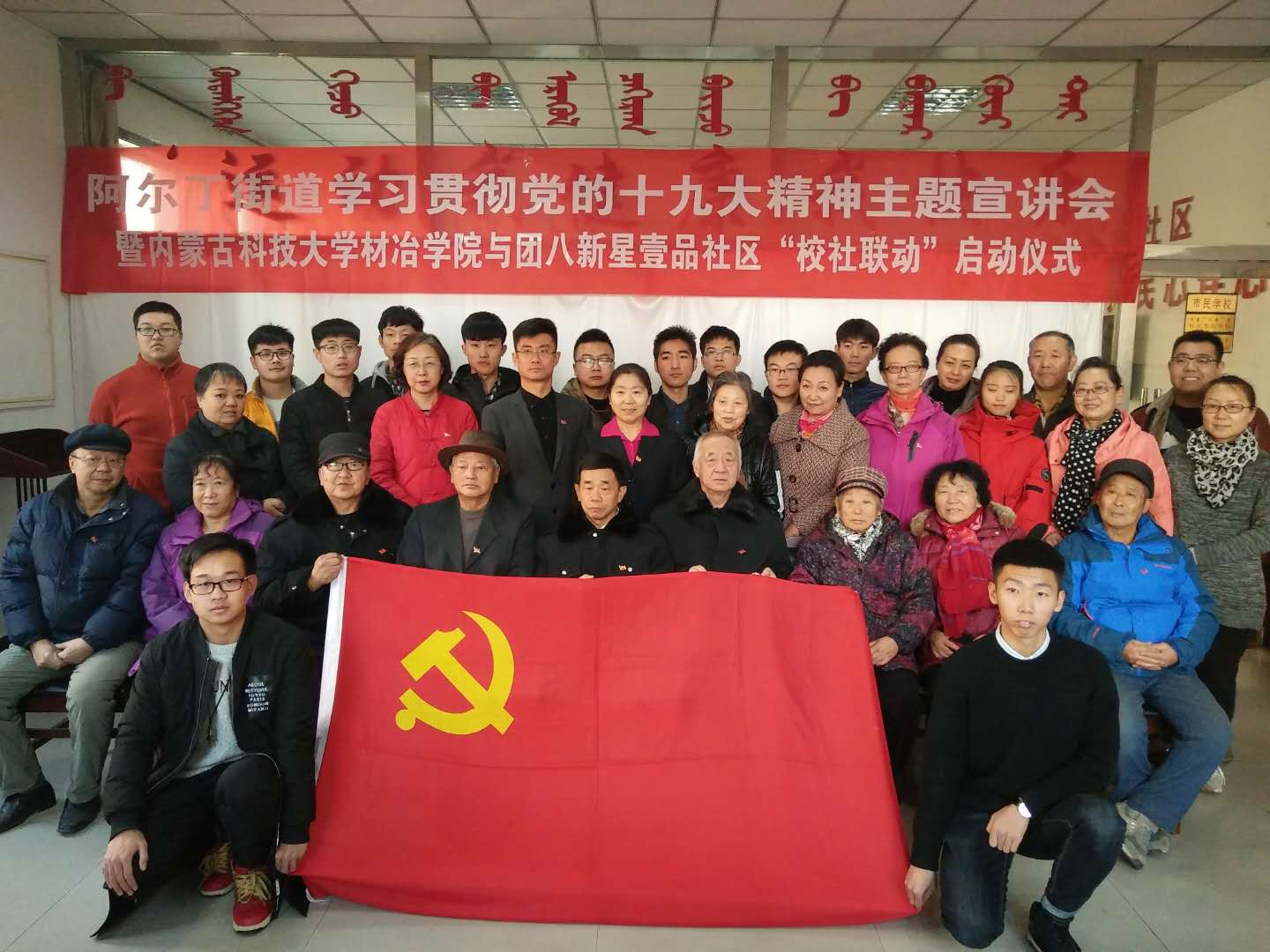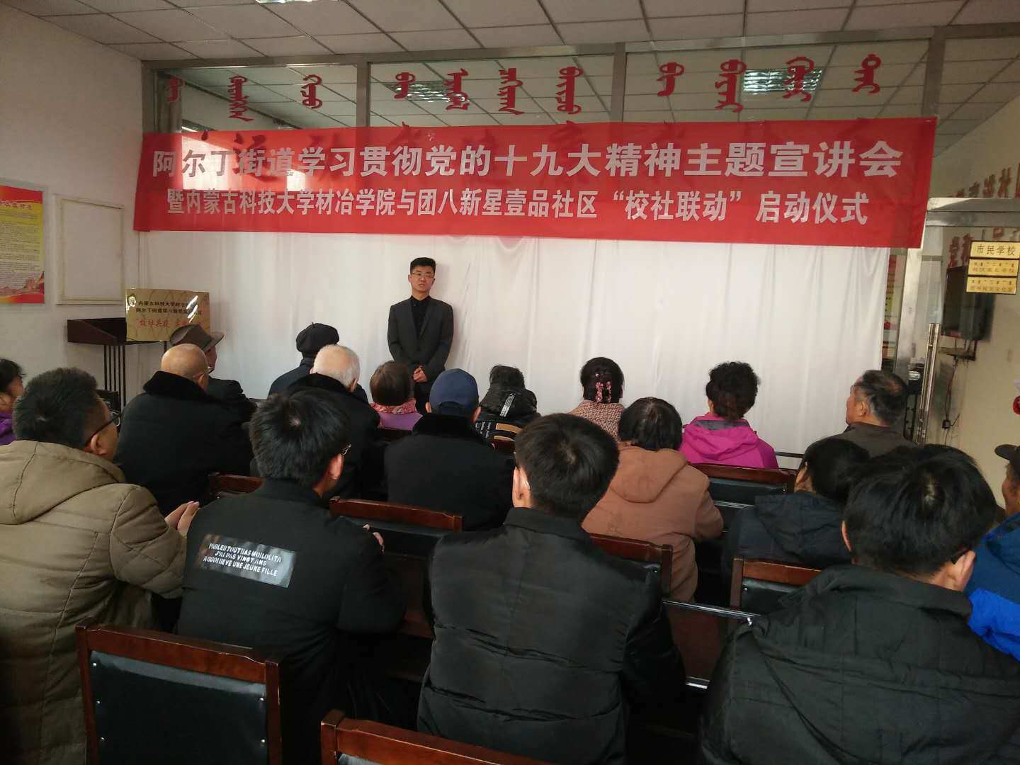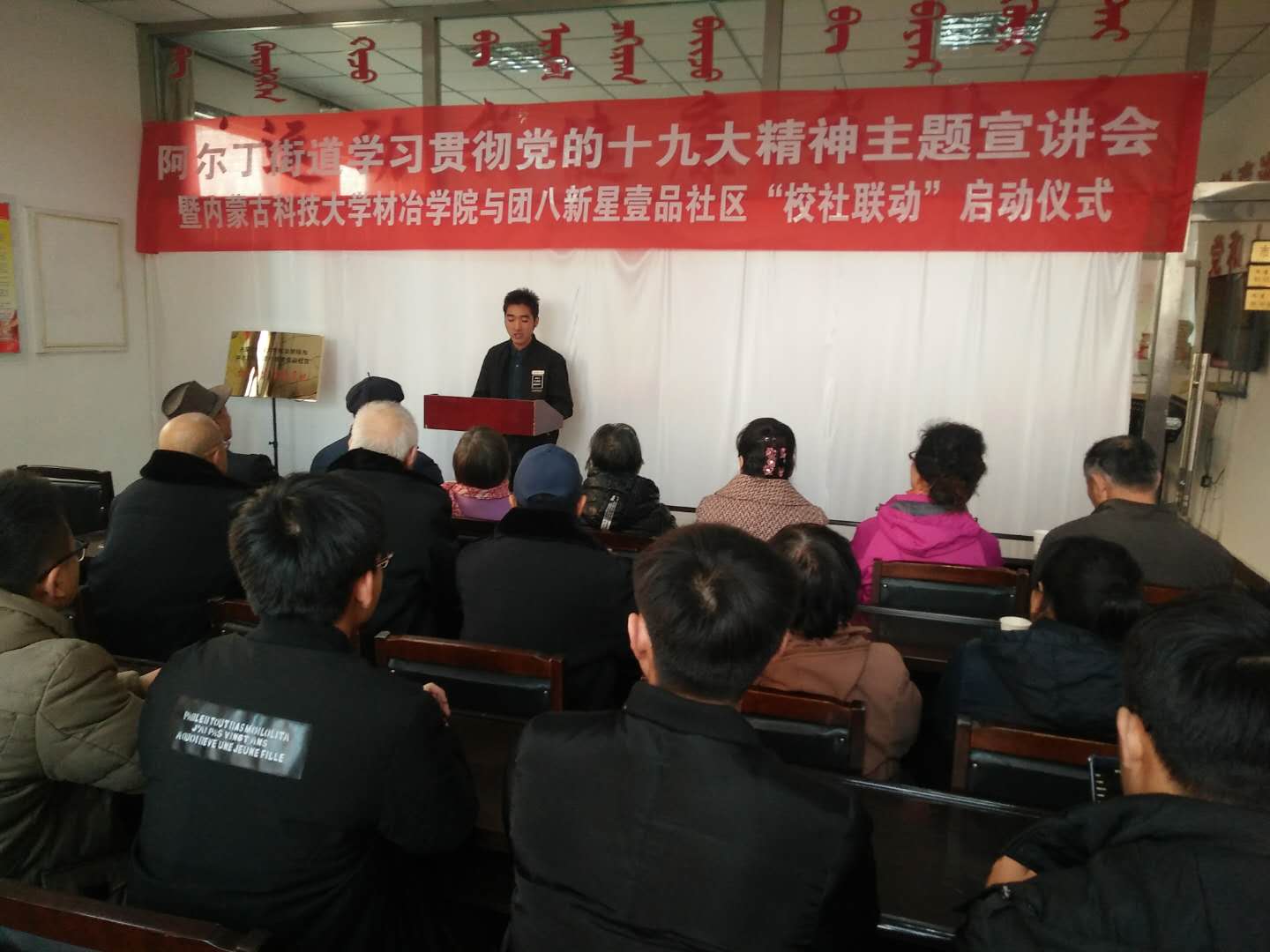于2017年11月19日与团八新星壹品社区联合举行了阿尔丁街道学习贯彻党的十九大精神主题宣讲会暨内蒙古科技大学在线赌博APP
