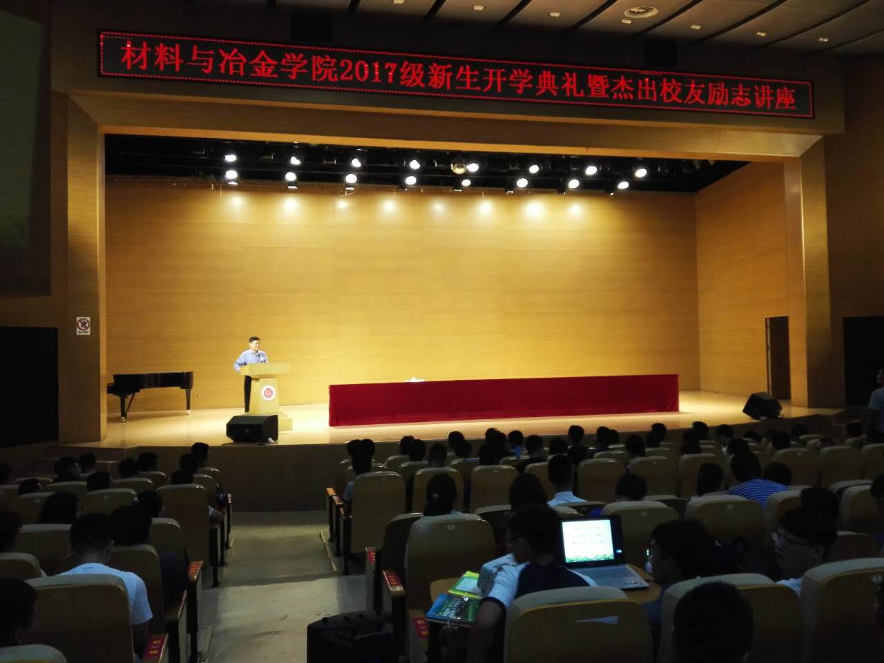 2017级本科生开学典礼在学校音乐厅举行。校党委常委副校长任慧平教授、校团委书记韩冰、院长宋希文等党政教领导出席。会议由院总支副书记副院长张鑫主持。开学典礼在全场庄严的奏唱国歌声中拉开帷幕。