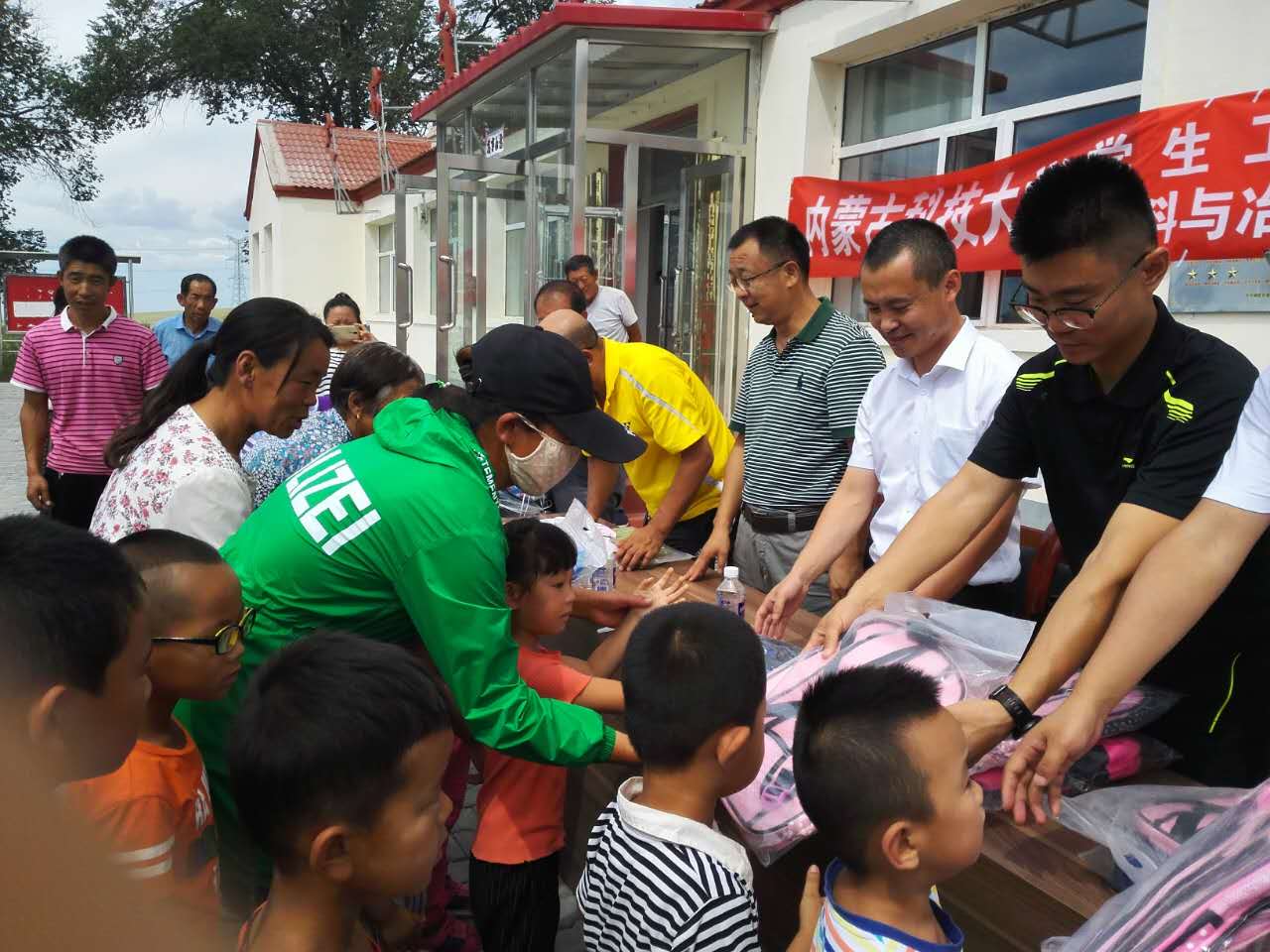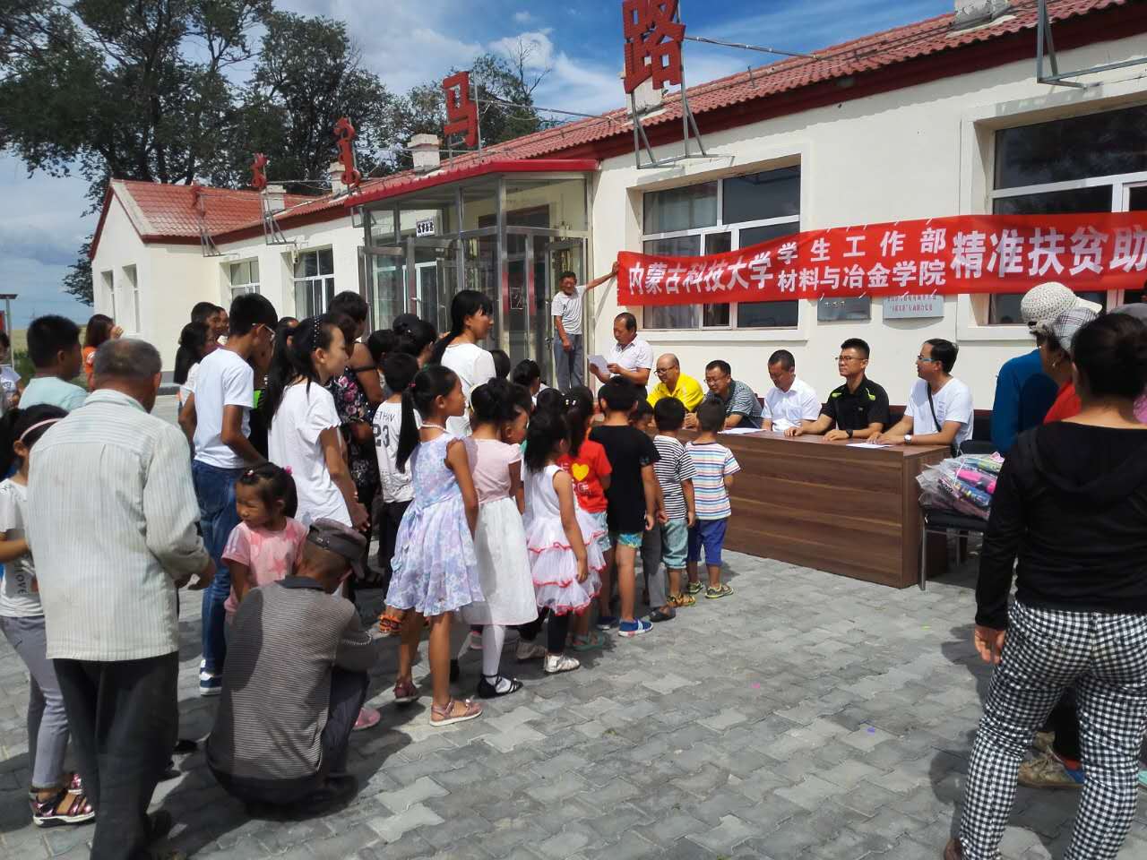 总支书记郝喜红、副书记张鑫、学生工作部副部长王树彤一行五人慰问我校对口帮扶贫困村-固阳县金山镇马路壕村我校精准扶贫住村教师罗建龙,并看望了全村40名小学生。同时举行了“守望相助、同心助学”助学捐助发放仪式。
