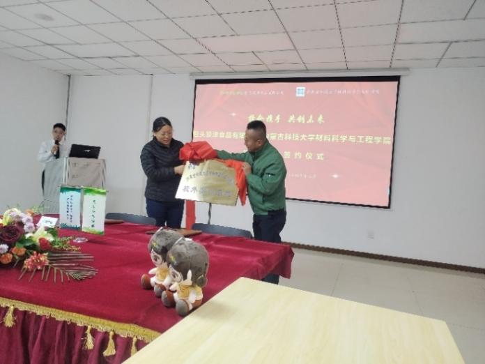 与包头顶津食品有限公司建立校外实训基地的揭牌仪式并参观了公司的生产线。