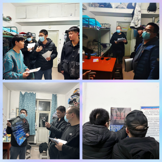老师们首先关切的询问大家近期甲流、新冠等春季多发传染病的防疫工作情况,叮嘱大家“戴口罩,勤洗手,多通风”,继续保持良好的卫生习惯。接下来,老师们就宿舍内务卫生、消防用电安全、网络电信反诈、意识形态建设等方面展开检查及宣传教育,及时发现并排除存在的安全问题隐患。最后,老师们还就如何适应大学生活、养成良好学习习惯、毕业生就业情况同大家进行了亲切友好的交流。