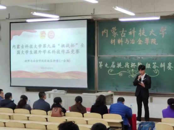 于2023年3月21日13:00在逸夫楼G403(一会场)、G404(二会场)举办了内蒙古科技大学第九届“挑战杯”全国学生课外学术科技作品竞赛。