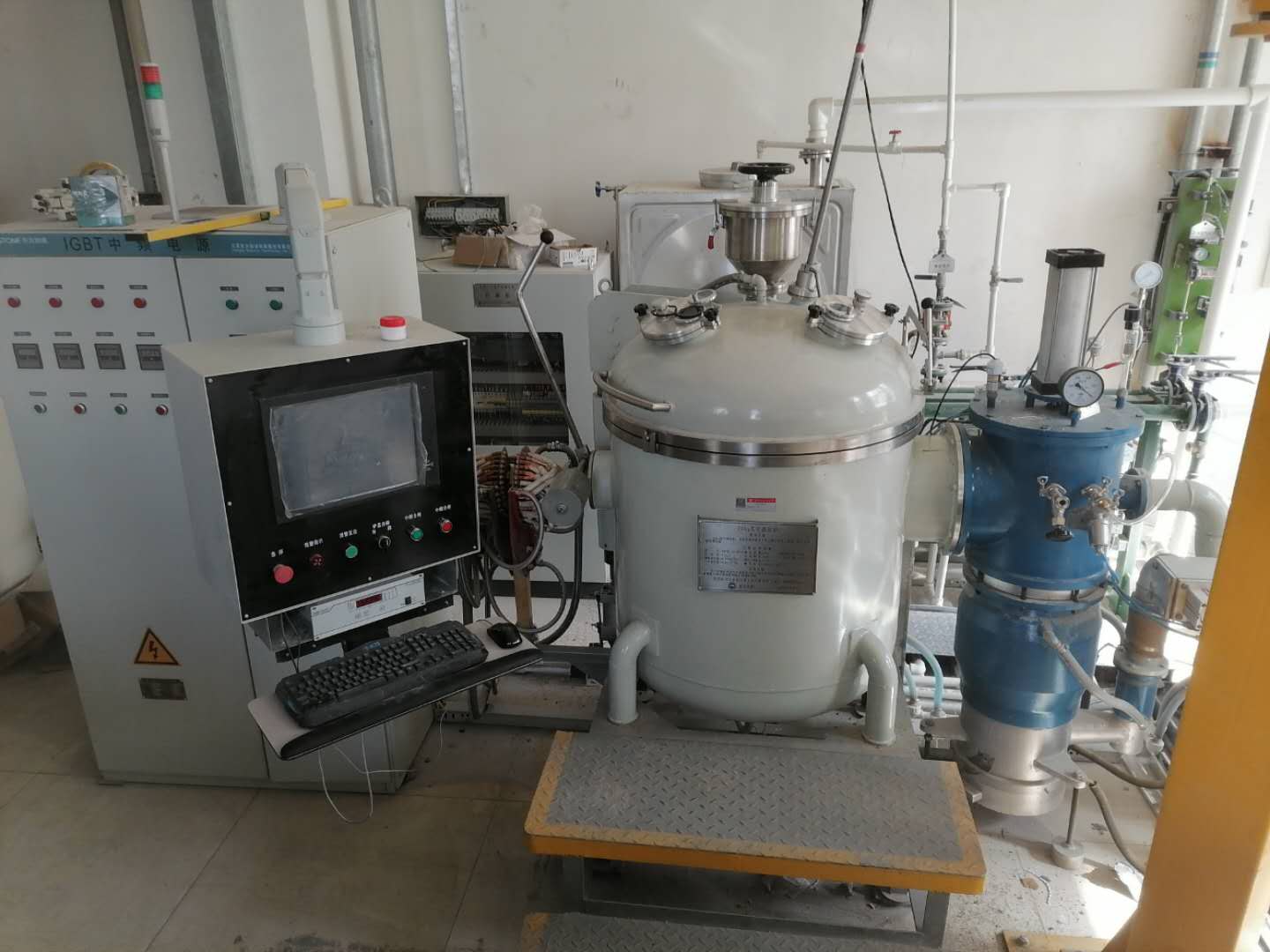 25kg真空感应炉,具有在真空条件下进行感应加热、测温、加合金和烧铸等功能。