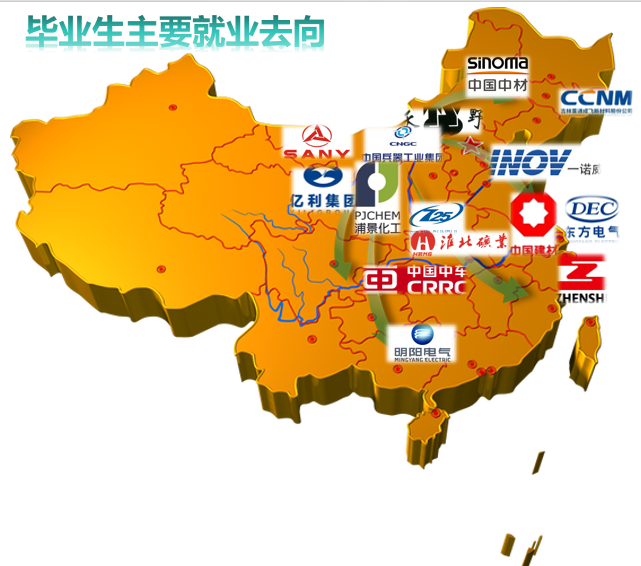 毕业生情况:本专业学生毕业可以在能源产业、电子电器、航空航天、汽车制造等行业就业。毕业生在就业市场上具有较高的竞争力和广泛的就业选择,平均就业率达90%以上。就业去向主要集中在高分子材料和复合材料领域。就业去向不乏中材叶片、时代新材、中复联众、三一重工、重通成飞、中车风电叶片、洛阳双瑞、明阳智能、东方电气等大型知名企业。另外,部分优秀学生通过保送、考研等方式进入国内本领域高水平大学继续深造,去向包括中国四川大学,哈尔滨工业大学,北京化工大学、西北工业大学和中科院等高校和科研院所。