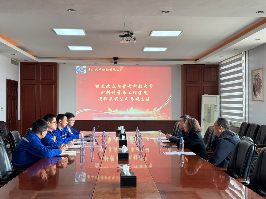 材料系教授计云萍、成型系教授张建飞、无机系系副主任郜建全以及学工办负责就业的辅导员吕布一行四人赴唐山文丰钢铁集团有限责任公司、唐山瑞丰钢铁(集团)有限公司、中航上大高温合金材料股份有限公司、中信渤海铝业控股有限公司开展“访企拓岗促就业”专项行动。